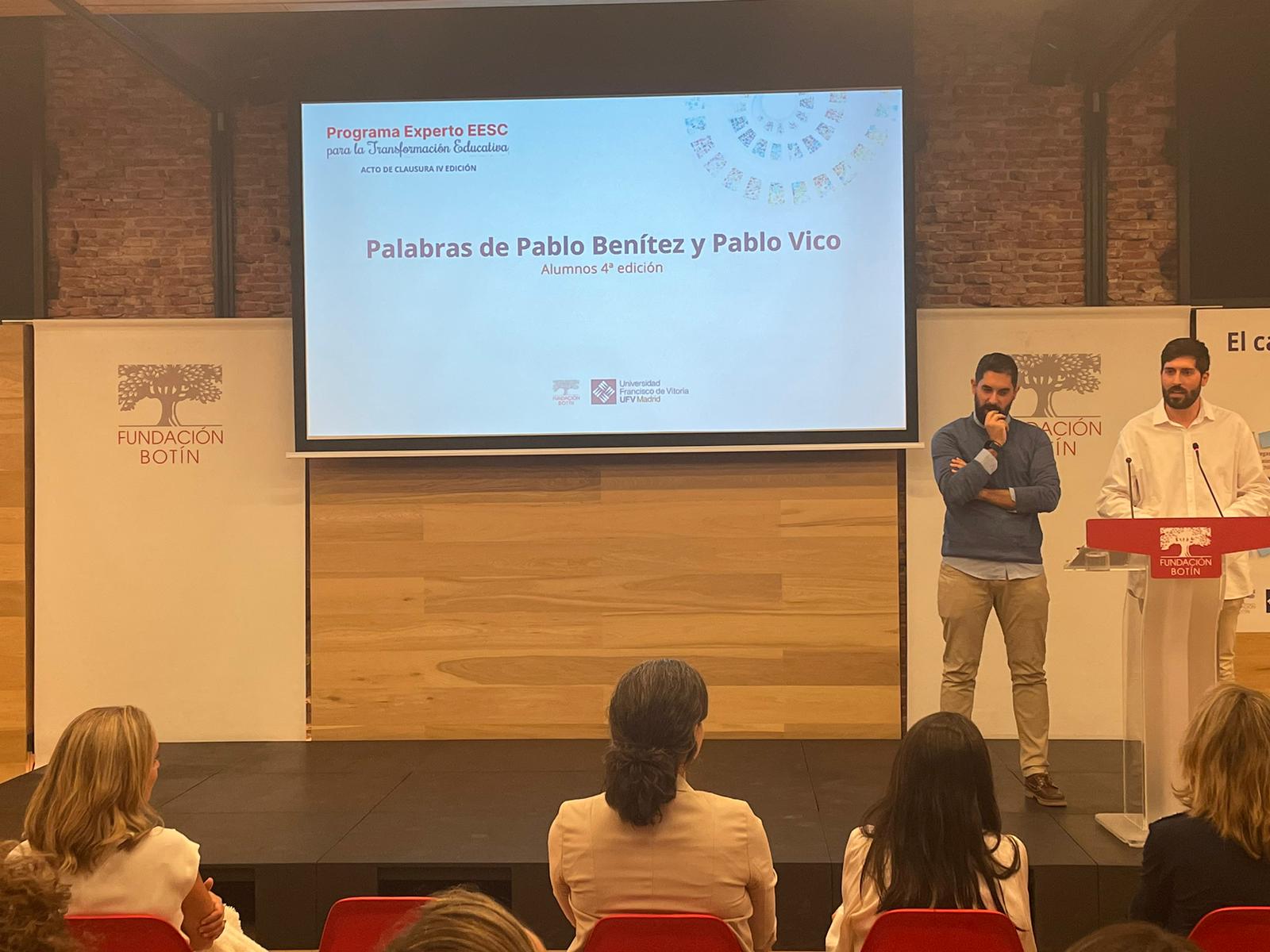 Con estas palabras de agradecimiento, compartían su experiencia Pablo Benítez y Pablo Vico profesores de San Ignacio en Secundaria, tras finalizar el Curso de Experto en Educación Emocional, Social y de la Creatividad para la Transformación Educativa. Un programa de la Fundación Botín y la Universidad Francisco de Vitoria pensado especialmente para profesores con unos objetivos muy claros: